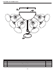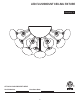 INSTRUCTIONS POUR L'ASSEMBLAGE 5. Placez le pavillon (A) sur les bras sortant du support de fixation (B) et fixez-le à l'aide des vis du pavillon (CC). 5 B Quincaillerie utilisée A x2 CC Vis du pavillon CC 6. Vissez les abat-jour (D) sur ensemble de DEL (C). 6 Répétez l'opération pour les abat-jour restantes (D). C D ENTRETIEN • Vérifiez toujours que le courant est coupé avant de nettoyer le luminaire. • Utilisez un linge doux et humide ainsi qu’un savon non abrasif.