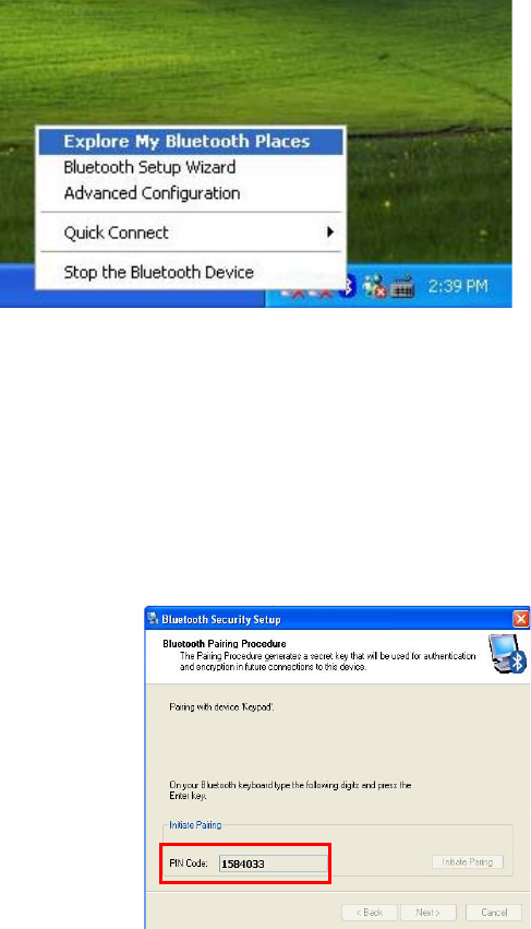 1. Right click on the BT icon and choose “Explore My Bluetooth Places”