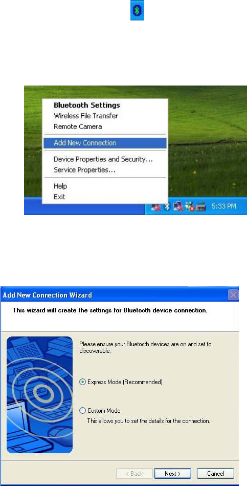 1. Right click on the BT icon and choose “Add New Connection”