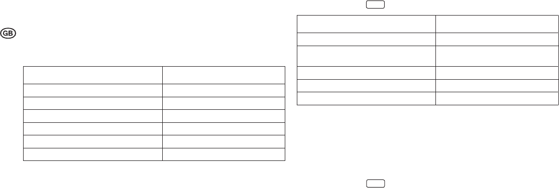3. Set vibration sensitivity (see table) by pressing (SP) buttons [15] to [20].