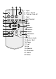 1. Bemenet 2. Lejátszás / Szünet 3. Be / Kikapcsolás (power) 4. Következő 5. Gyors előre 6. OK 7. Jobb 8. Közelítés 9. Hangerő + 10. Hangerő 11. Ismétlés 12. Információ 13. Turn 14. Képmód 15. Vissza / Kilépés 16. Le 17. Bal 18. Fel 19. Tekerés 20. Előző 21. Menü 22.