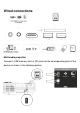 HD TV in This projector supports MHL cable and I-push connections . For detailed information, please refer to the manual of the MHL cable or Ipush adapter. Audio output It allows you to connect 3.5mm headphones and other audio devices. Others When the device is on, you can use the 5V power output for charging your mobile phone, tablet, etc.