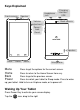 Keys Explained Front camera Headphone jack Speaker Charging interface / USB Back camera Volume adjustment Power / Lock Reset Speaker Back Menu Home Back Power Home Menu Microphone Press to get the options for the current screen. Press to return to the Home Screen from any. Press to go to the previous screen. Press to switch your tablet to Sleep mode. Press to wake up your tablet. Hold to turn on Airplane mode, or to power off.