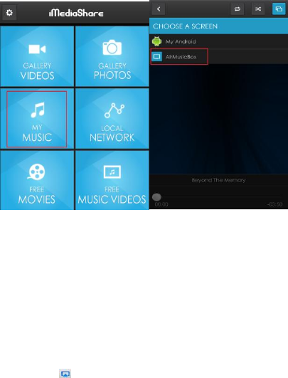 Open iMediaShare, kies een nummer uit "My Music" ... "Kies een