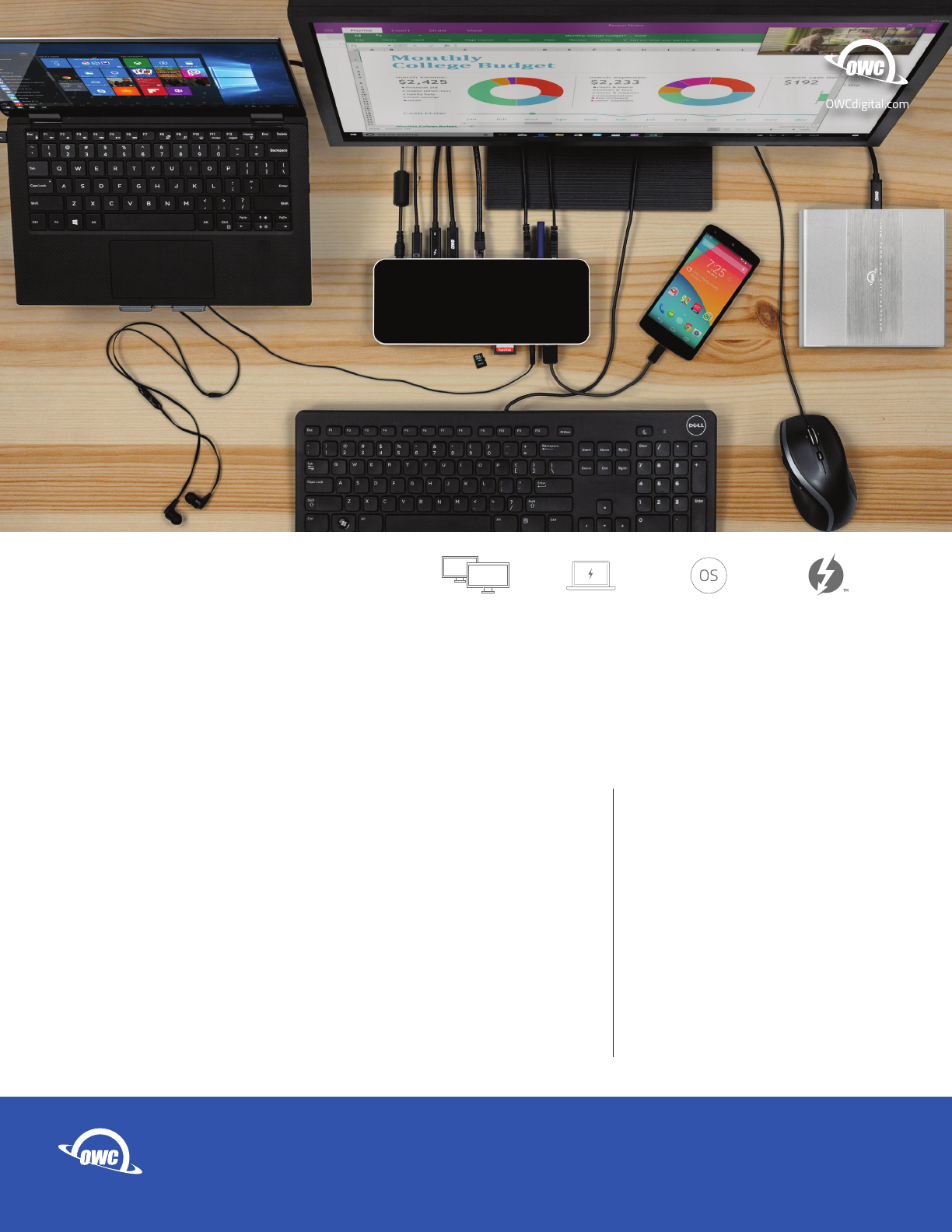 Through one cable, the OWC Thunderbolt 3 Dock makes all of this possible in
