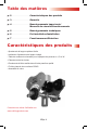 Table des matières p. 2. . . . . . . . . . . . . . . . . Caractéristiques des produits p. 3. . . . . . . . . . . . . . . . . Garantie p. 4. . . . . . . . . . . . . . . . . R enseignements importants/ Mesures de sécurité/Avertissements p. 5. . . . . . . . . . . . . . . . . Renseignements techniques p. 6. . . . . . . . . . . . . . . . . Pré-installation/Installation p. 7. . . . . . . . . . . . . . . . .