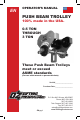 Operation Warnings & Precautions Push Beam Trolley operators should read and fully comprehend this entire manual and all warnings on the product before beginning operation. If this manual is not read and followed completely, injuries may occur. All Operators MUST: • Be trained in proper trolley operation and in dealing with potential malfunctions. • Abstain from use of alcohol, medications, or drugs while operating. • Avoid operation while tired or distracted.