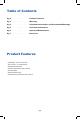 Table of Contents Pg.2 . . . . . . . . . . . . . . . . . . . . . . Product Features Pg.3 . . . . . . . . . . . . . . . . . . . . . . Warranty Pg.4 . . . . . . . . . . . . . . . . . . . . . . Important Information and Precautions/Warnings Pg.5 . . . . . . . . . . . . . . . . . . . . . . Technical Information Pg.6 . . . . . . . . . . . . . . . . . . . . . . Operation/Maintenance Pg.7 . . . . . . . . . . . . . . . . . . . . . .
