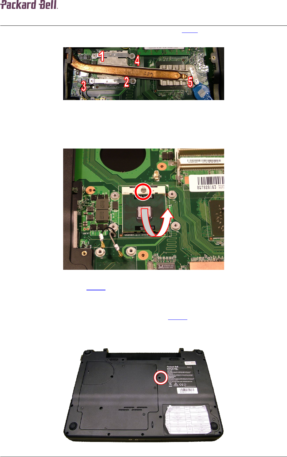 4. Turn the 5 screws securing the heat sink halfway loose in designated order.