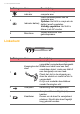 - De computer leren kennen # Pictogram Item Energieindicator 4 5 Beschrijving Geeft de energiestatus van de computer aan. Geeft de batterijstatus van de computer aan. Opladen: Het licht is oranje als de Indicator batterij batterij wordt opgeladen. Volledig opgeladen: Het licht is blauw in de AC-modus. Interne microfoon voor Microfoon geluidsopname. Linkerkant 12 3 # Pictogram Item 1 2 3 Beschrijving Aansluiting voor een Kensingtoncompatibel computerbeveiligingsslot.