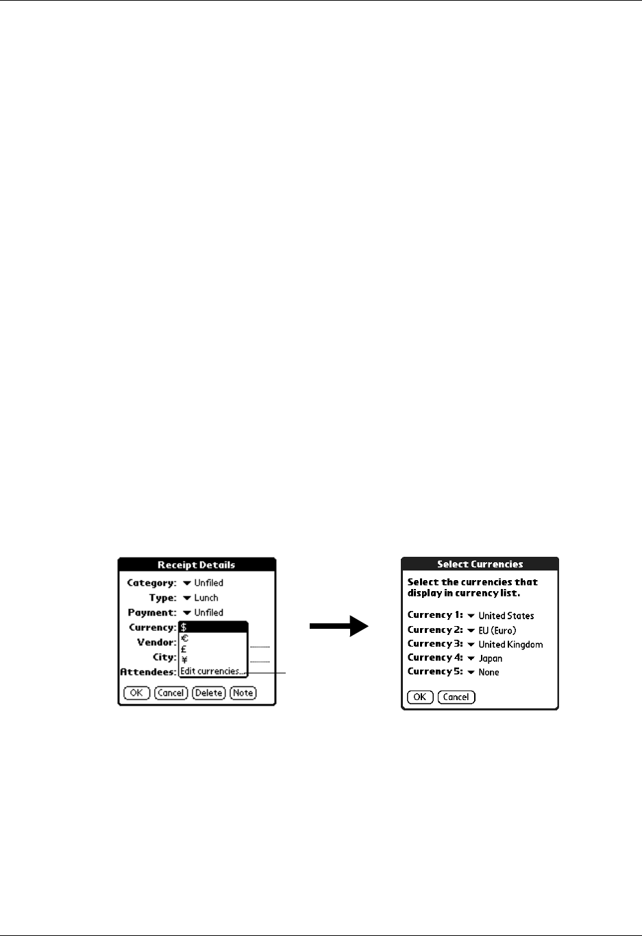 1. Tap the Currency pick list in the Receipt Details dialog box, and then select Edit