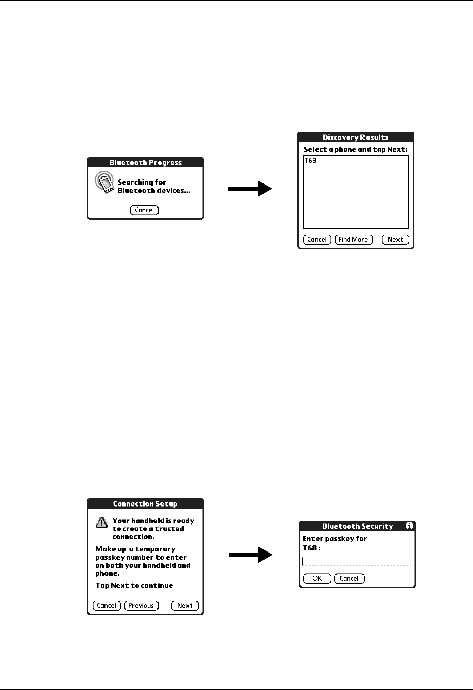 When your handheld discovers a Bluetooth phone, it displays a screen similar