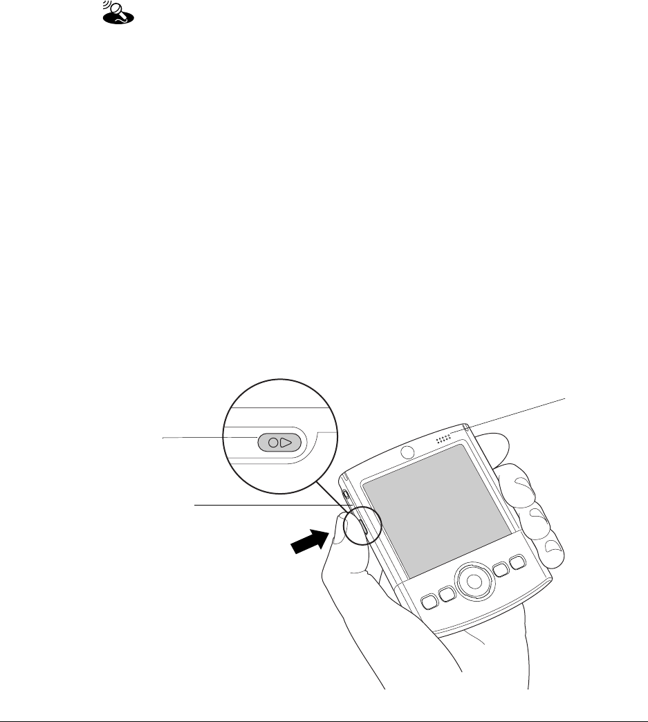 ■ Press the Voice Memo application button on the side panel of your handheld.