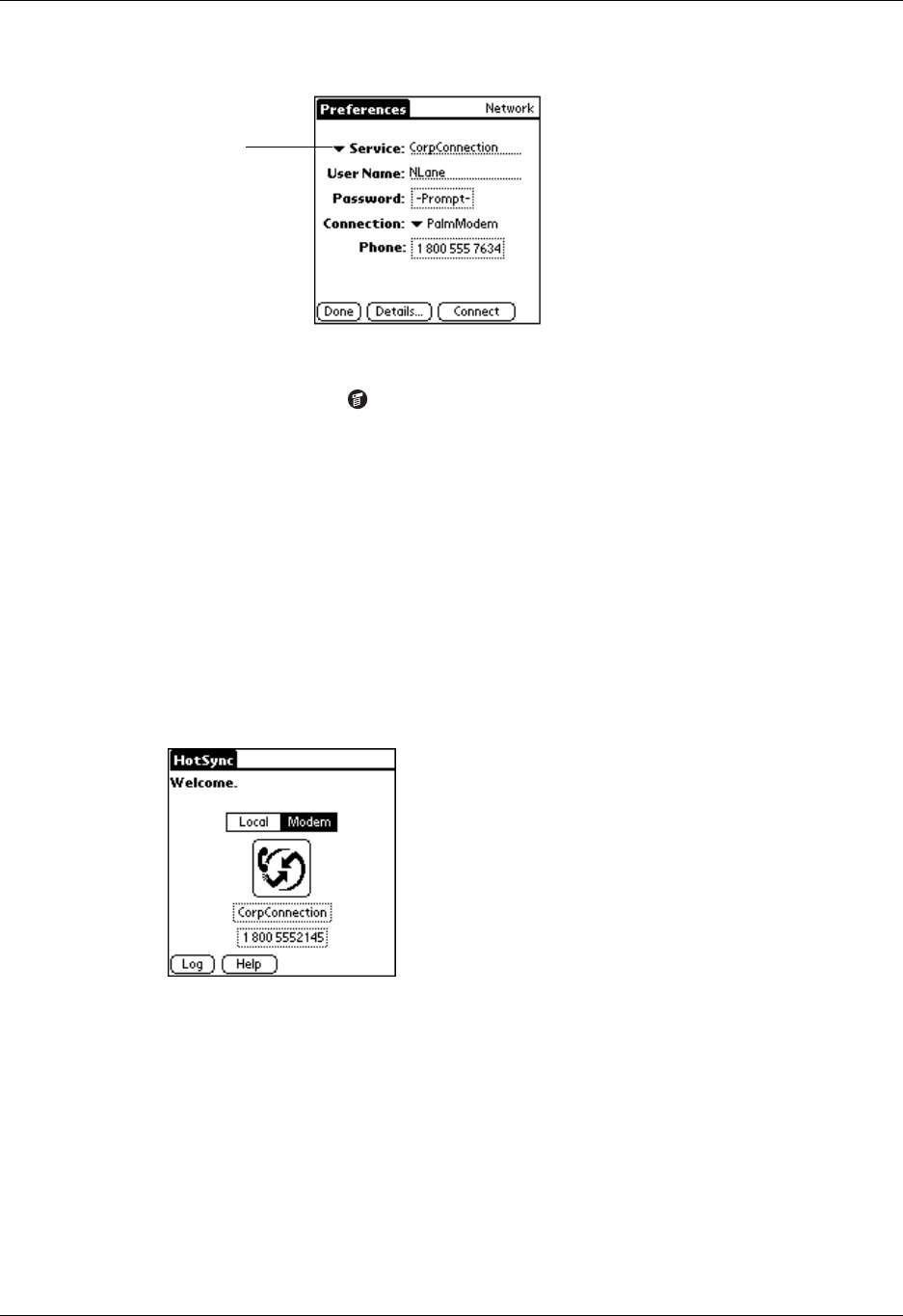 For instructions, see “Selecting the conduits for a modem HotSync operation”