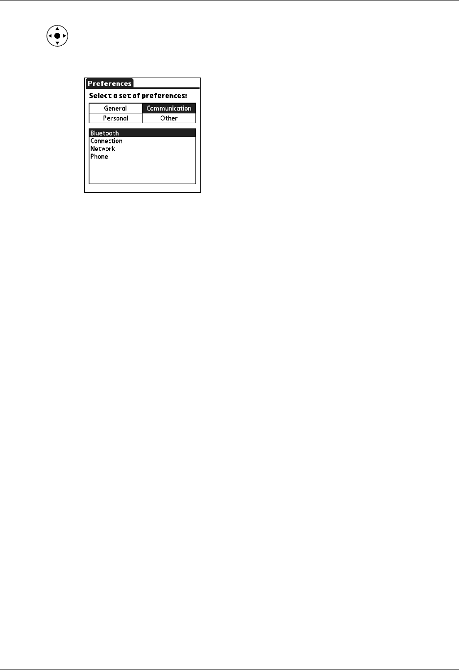 the navigator, and select a Preferences screen by pressing Up and Down on the