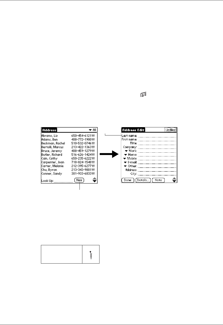 1. Press the Address Book application button on the front of your handheld to