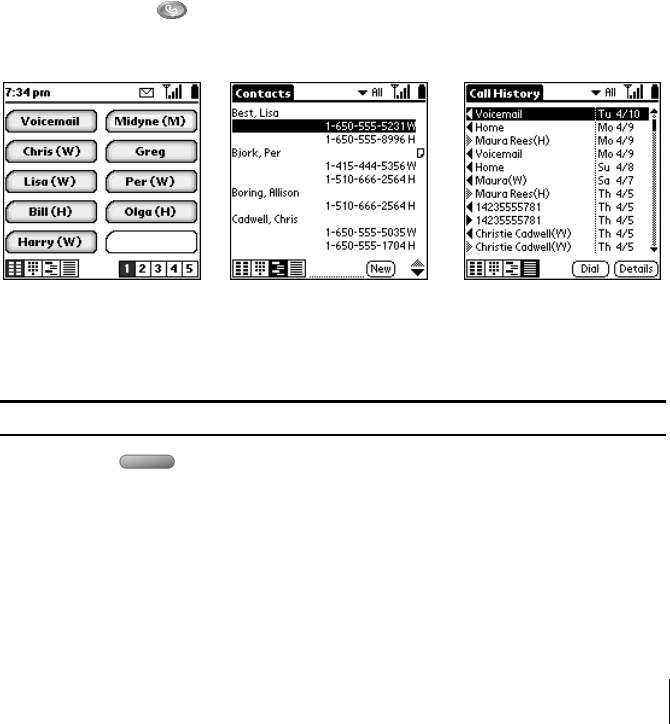 - Making a call from the Speed Dial, Contacts, or Call History views