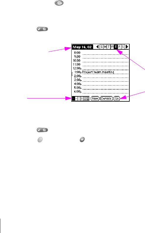 Press Date Book Plus repeatedly to cycle through the various views: day, week, week with