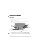 Using the Keyboard Entering text Use your thumbs to press the keys. Each letter key has three modes: ■ Normal: types a lowercase letter. ■ Shift: types an uppercase letter. ■ Option: types the number/symbol, or activates the function, that appears in blue above the letter on the key. % Q & A Option Caps Shift @ $ / R *T ( S ) D – F + G Z ? X ! C ’V W : CAPS E Y H B SYMBOL 1 4 7 U J N 2 5 8 .