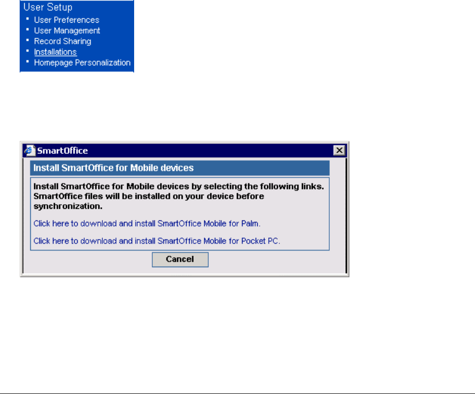 4. Select the Click here to download and install SmartOffice Mobile for Palm option to begin the