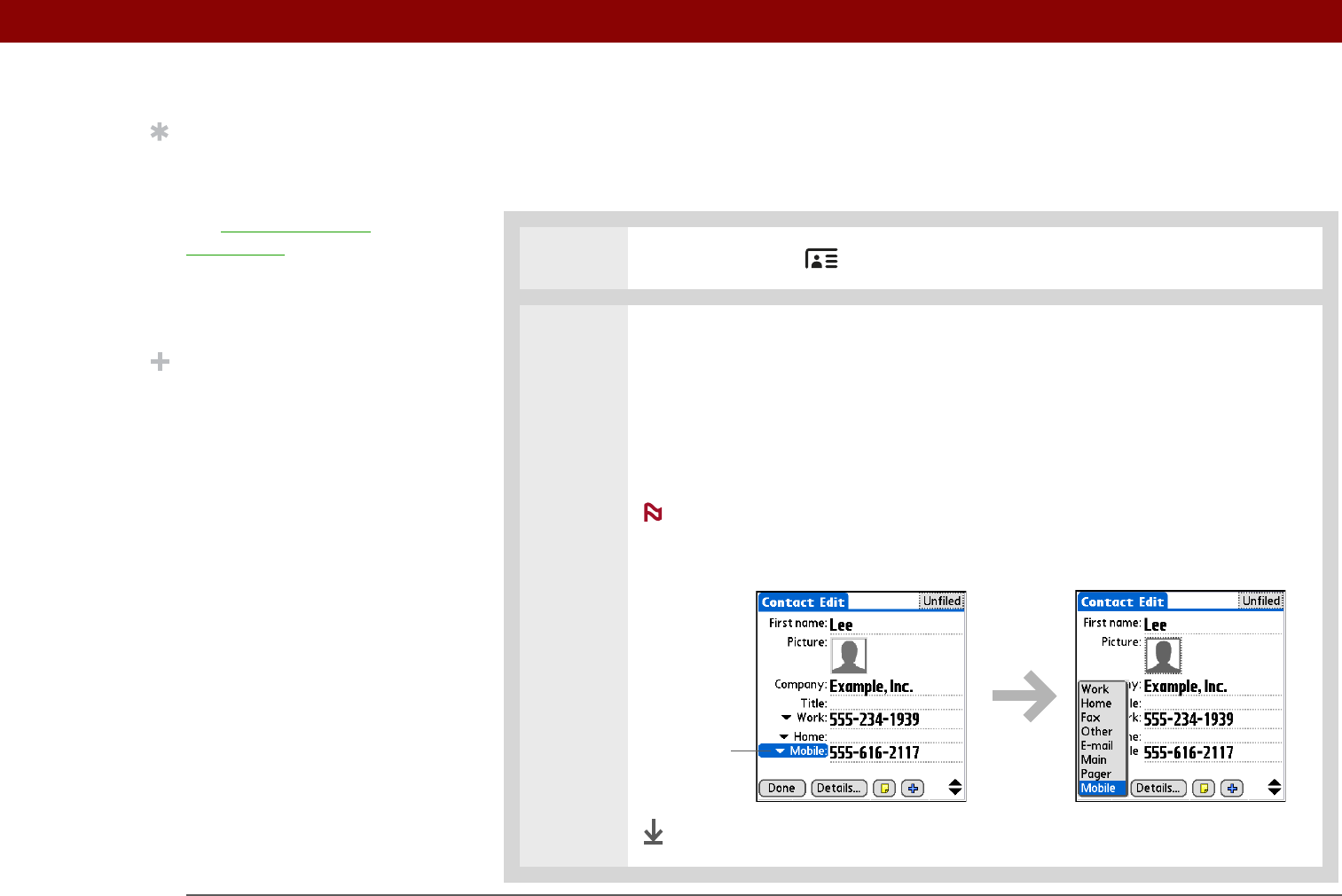 You can select the types of phone numbers (work, home, mobile, pager, and so on), as well as