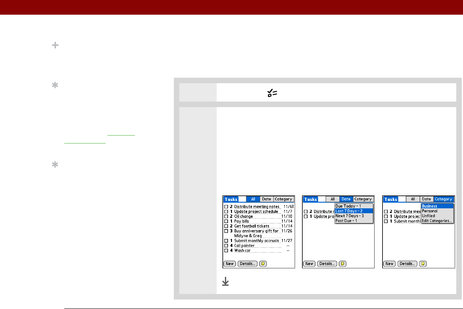Category Displays tasks that are assigned to the selected category. Select the