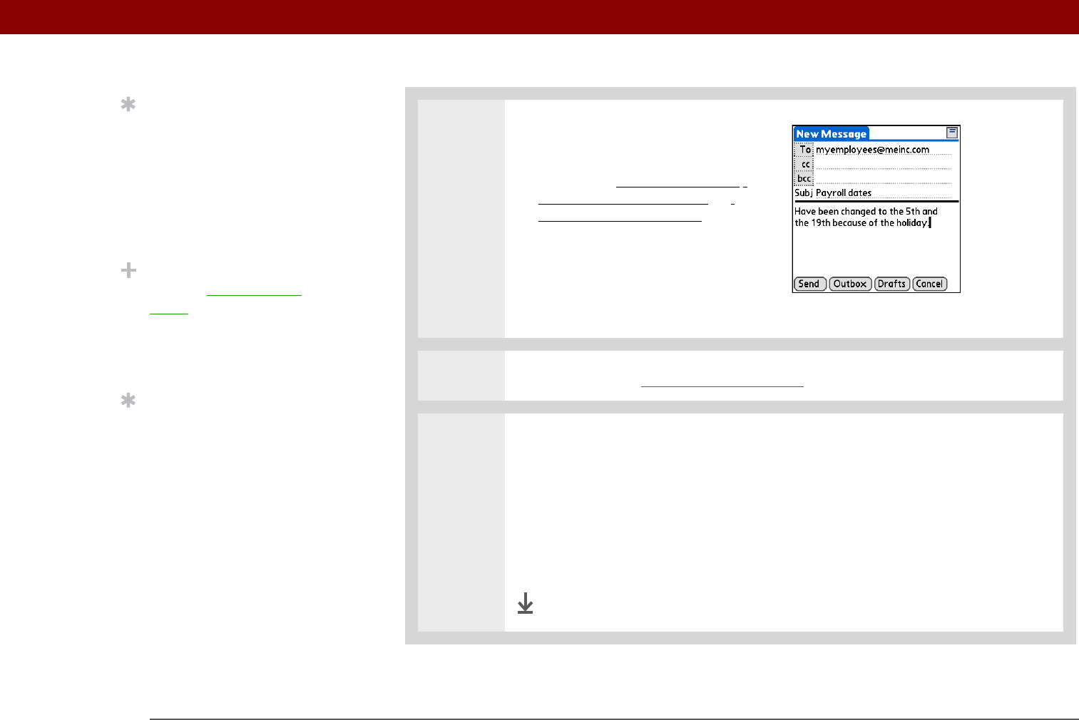 Drafts Saves your message so you can work on it at another time.