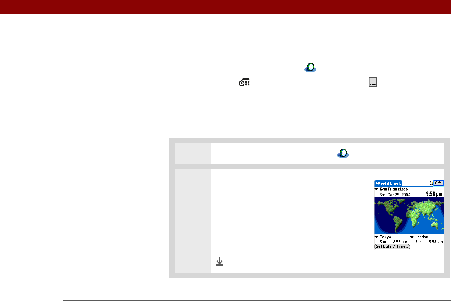 In World Clock, you can set the location, date, and time for a primary location. The settings for this