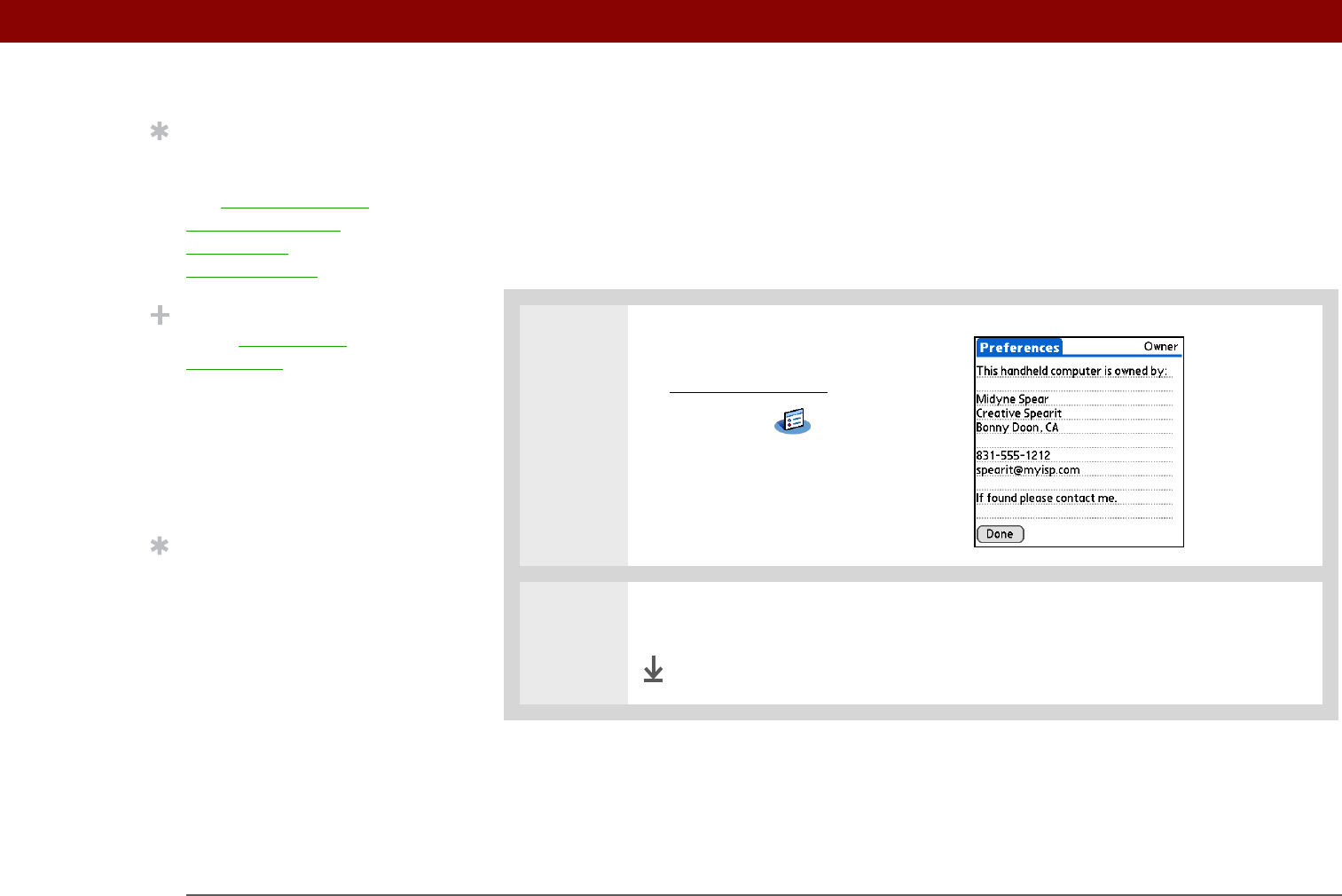 contains the information you entered when you installed the CD and set up your handheld, but