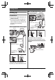 Getting Started Base unit (KX-TG7641 series: page 3) Setting up Press plug firmly. “Click” Connections R Use only the supplied Panasonic AC adaptor PNLV226. R If you do not connect the telephone line cord and use only cellular lines, set the cellular line only mode to use this unit more conveniently (page 21). Base unit (KX-TG7621 series: page 3) Hook “Click” Hooks (120 V AC, 60 Hz) “Click” To single-line telephone jack DSL/ADSL filter* (RJ11C) Correct Wrong Hooks Press plug firmly.