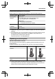 Useful Information Programmable settings Problem Cause/solution The display is in a language I cannot read. R Change the display language (page 18). I cannot register a handset to a base unit. R The maximum number of handsets (6) is already registered to the base unit. Cancel unused handset registrations from the base unit (page 48). Battery recharge Problem Cause/solution The handset beeps and/or flashes. R Battery charge is low. Fully charge the batteries (page 11).