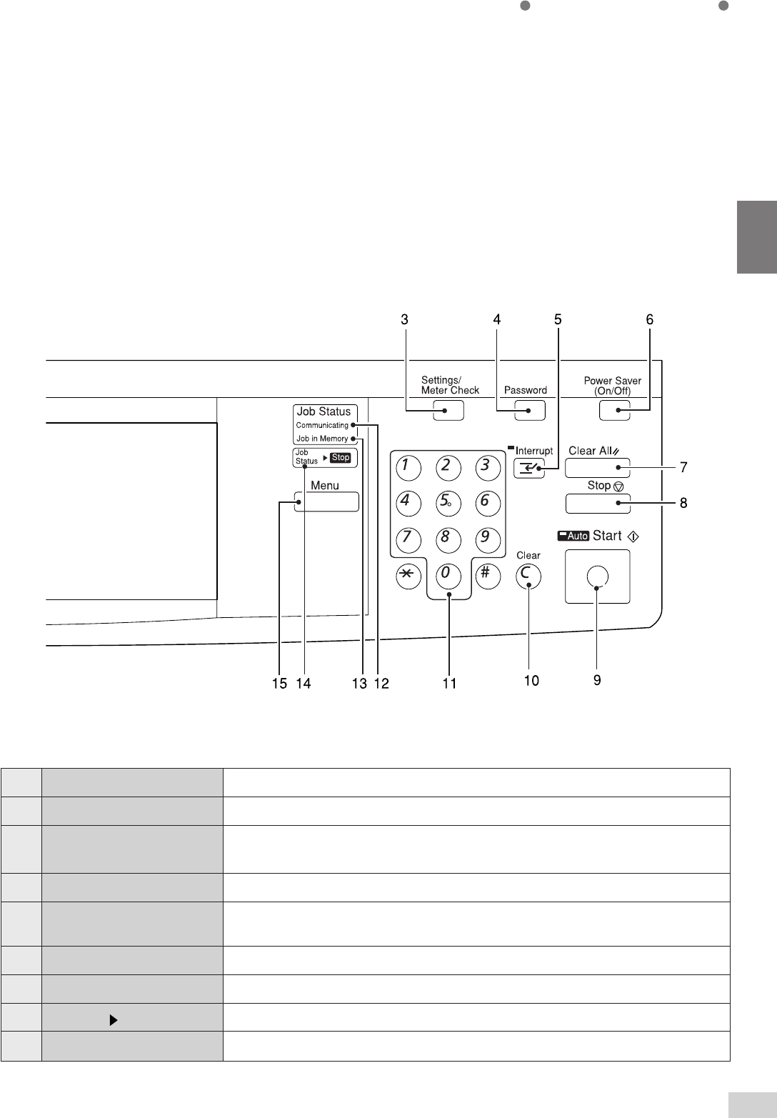 Job in Memory Indicator* The indicator lights up when data are accumulated in the memory of the machine.
