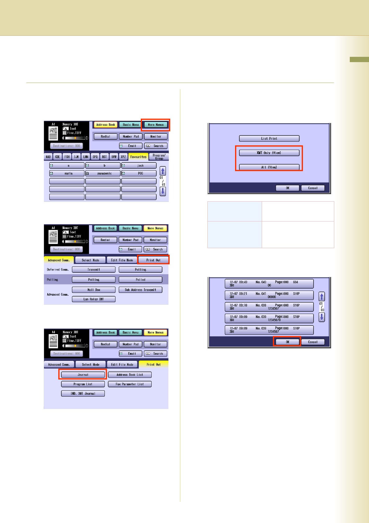 To view the communication results on the Touch Panel Display, follow the steps below.
