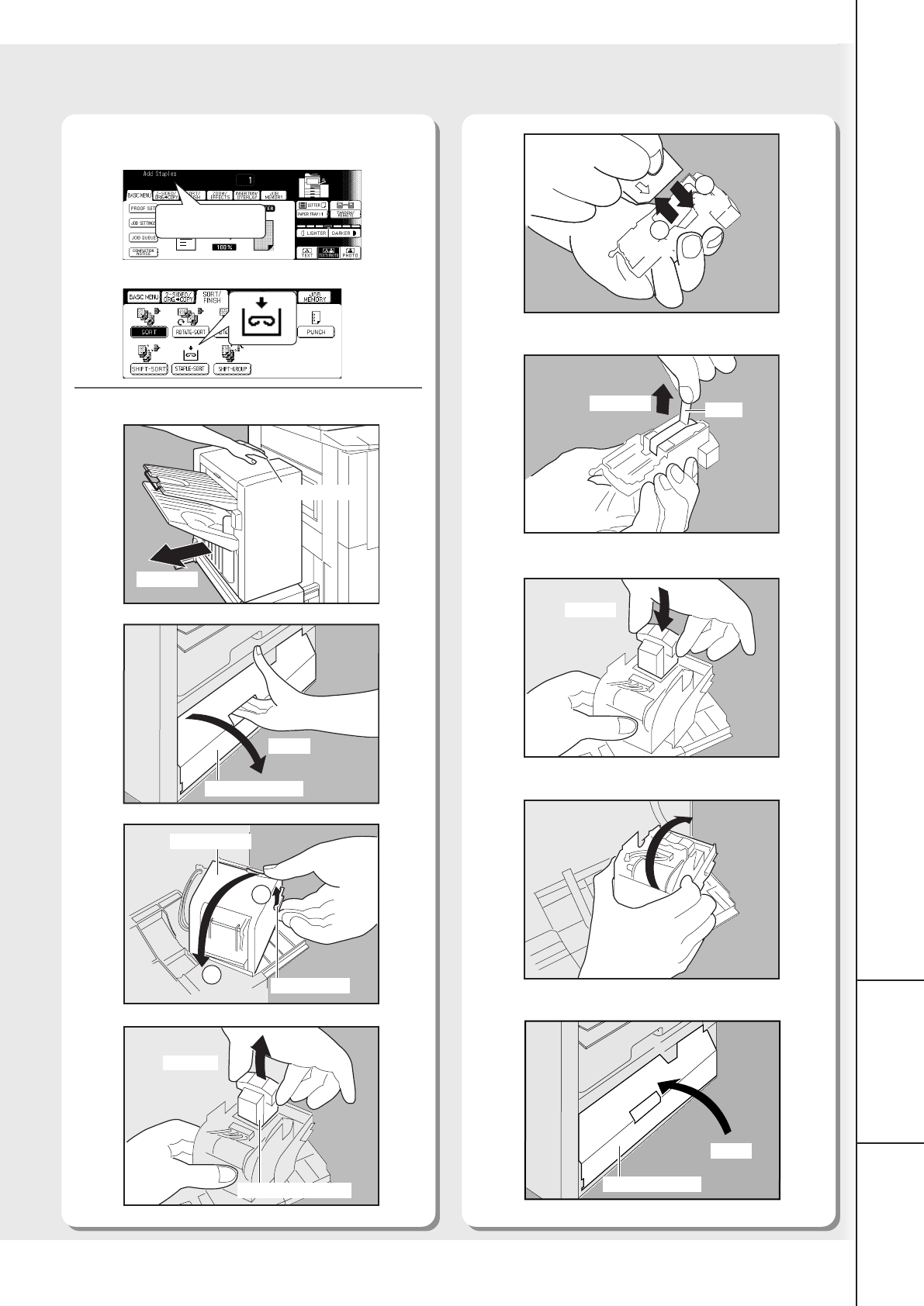 Staple message will be shown on the display.