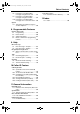 FPG376.book Page 6 Wednesday, July 30, 2003 6:28 PM Table of Contents 1. Introduction and Installation 1. Table of Contents Accessories 1.1 Included accessories..........................8 1.2 Accessory information ........................9 Finding the Controls 1.3 Overview ............................................ 9 1.4 Description of base unit buttons ....... 10 1.5 Description of handset buttons......... 11 Installation (Base Unit) 1.6 Ink film .............................................. 12 1.