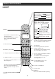 Names and Functions HANDSET In use/charge indicator When receiving a call When recharging When recharging is complete flashes red lights red lights green LC Display (can be seen in the dark) Displays battery strength, telephone numbers etc.