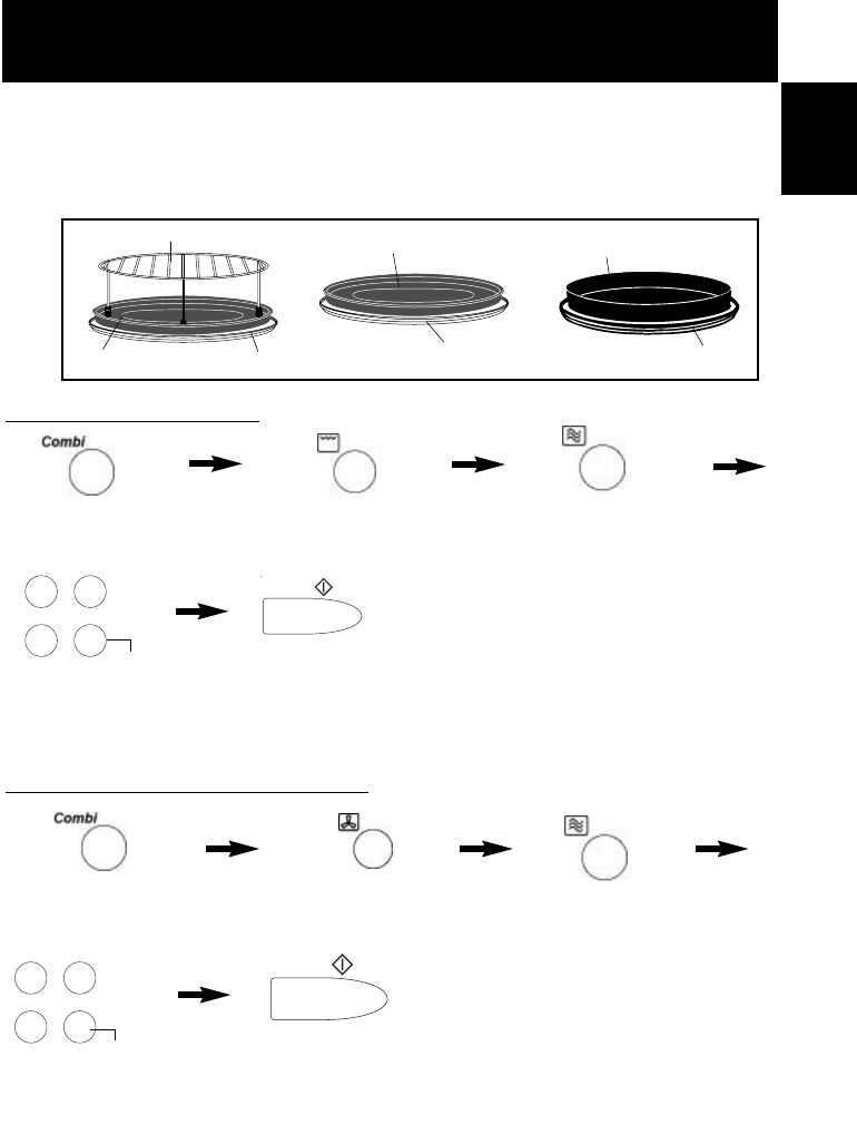 gombot. A kombinációs előmelegítés közben a készülék nem bocsát ki mikrohullámokat.