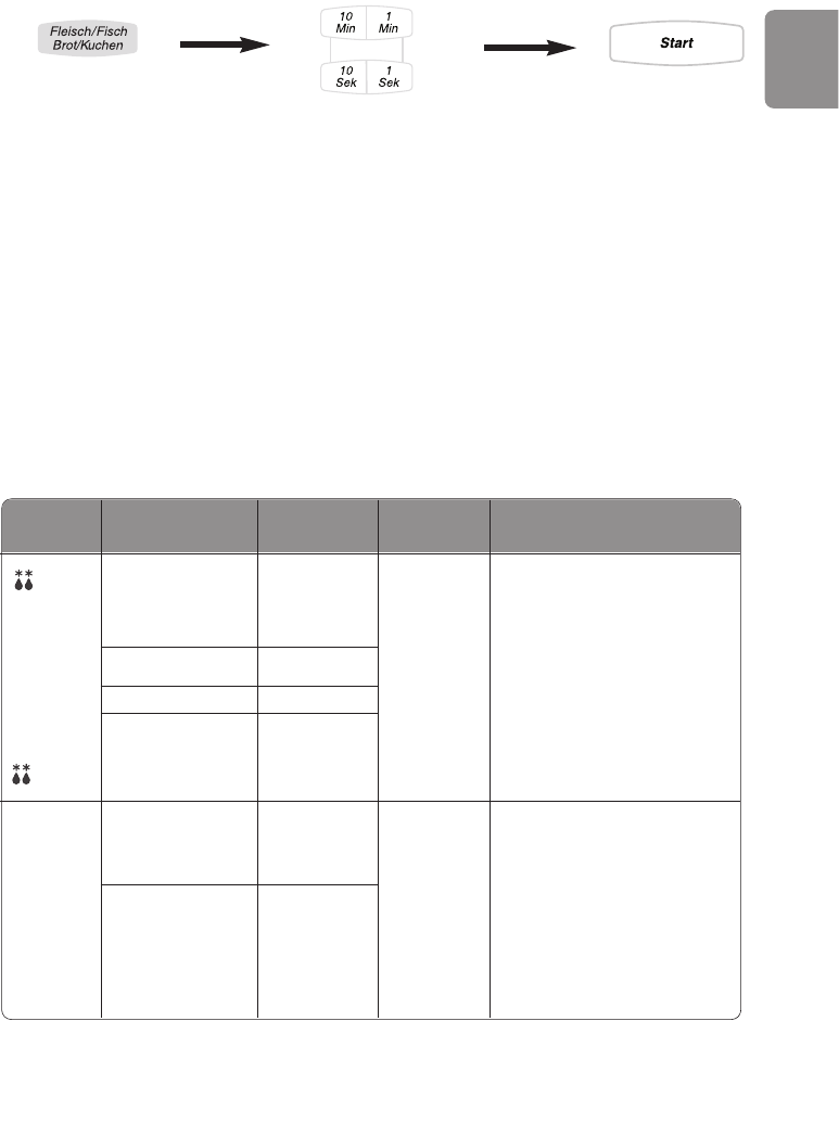 Programm und geben Sie das Gewicht des Lebensmittels auf 10g genau ein. Bei jedem Programm wird