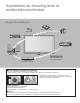 Experience an amazing level of multimedia excitement Enjoy rich multimedia SD memory card USB device Camcorder VCR Cable box Amplifier with Speaker system DVD player/ Blu-ray Disc player DVD recorder/ Blu-ray Disc recorder ■ Do not display a still picture for a long time This causes the image to remain on the plasma screen (“Image retention”). This is not considered a malfunction and is not covered by the warranty.