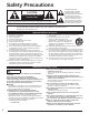 Safety Precautions CAUTION RISK OF ELECTRIC SHOCK DO NOT OPEN WARNING: To reduce the risk of electric shock, do not remove cover or back. No user-serviceable parts inside. Refer servicing to qualified service personnel. WARNING: The lightning flash with arrowhead within a triangle is intended to tell the user that parts inside the product are a risk of electric shock to persons.