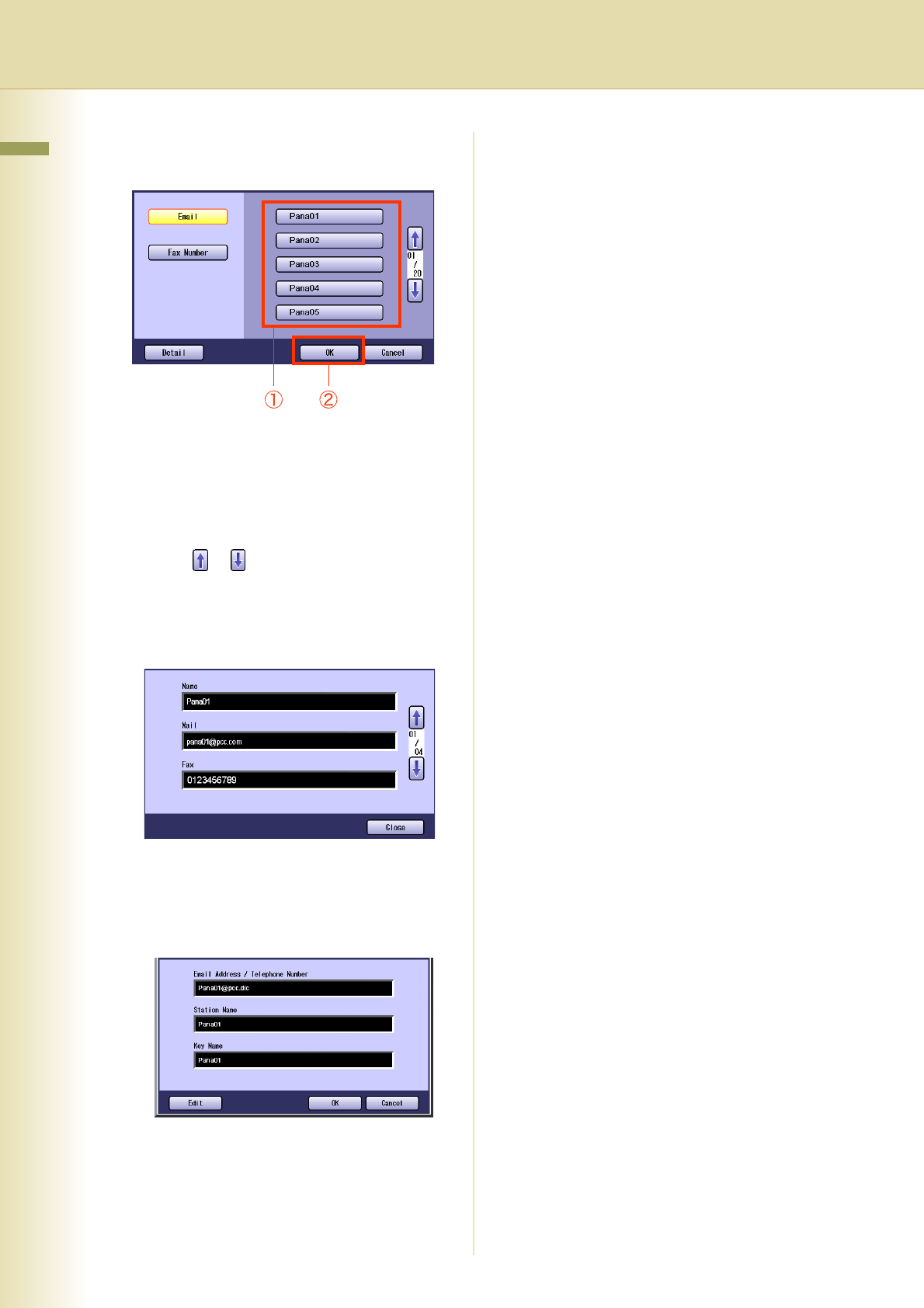 Addresses and Fax Number list by selecting