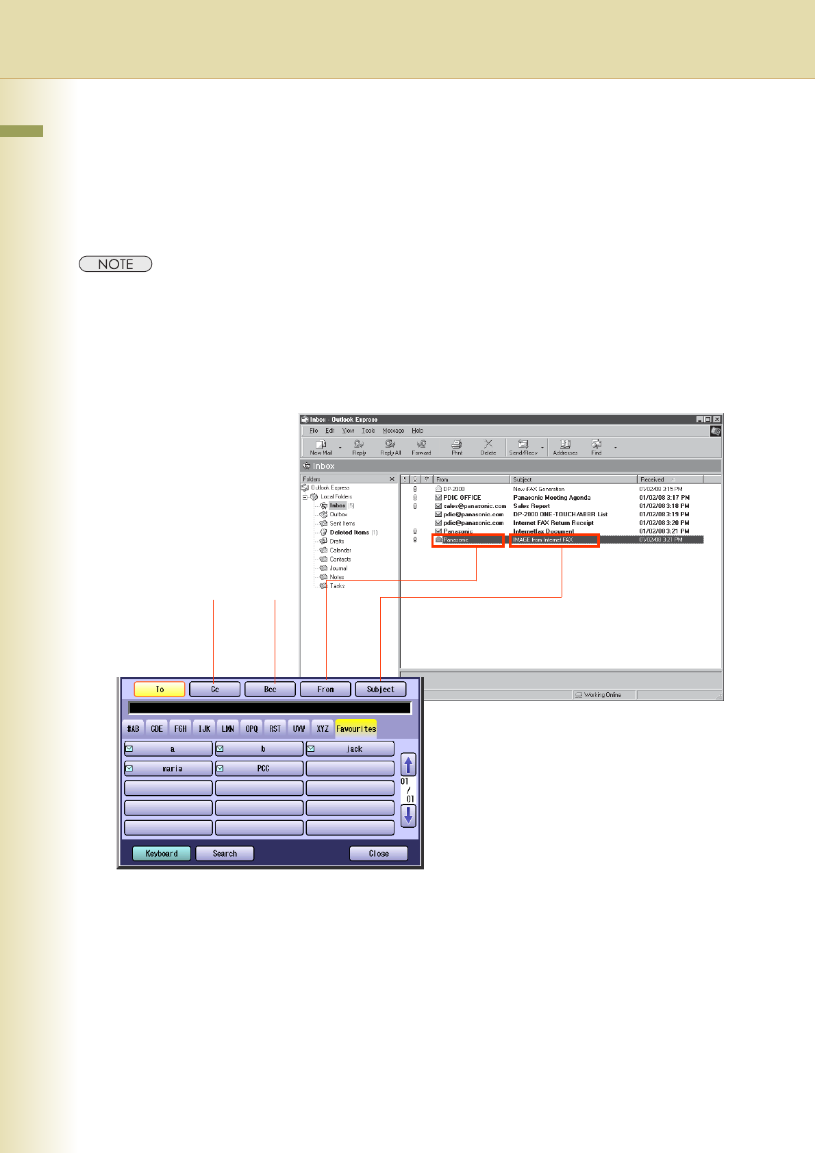 If the use of From has been enabled in Function Parameters, the machine can transmit an Email with