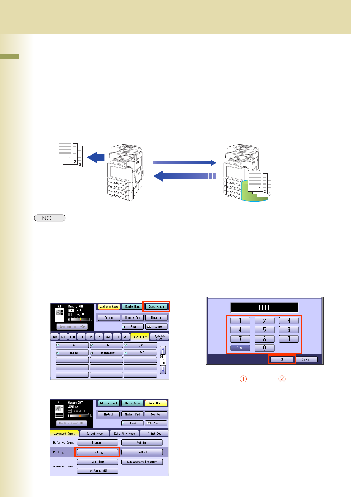 z If a password is not set in the polled station, you may poll the other station even though your machine has a