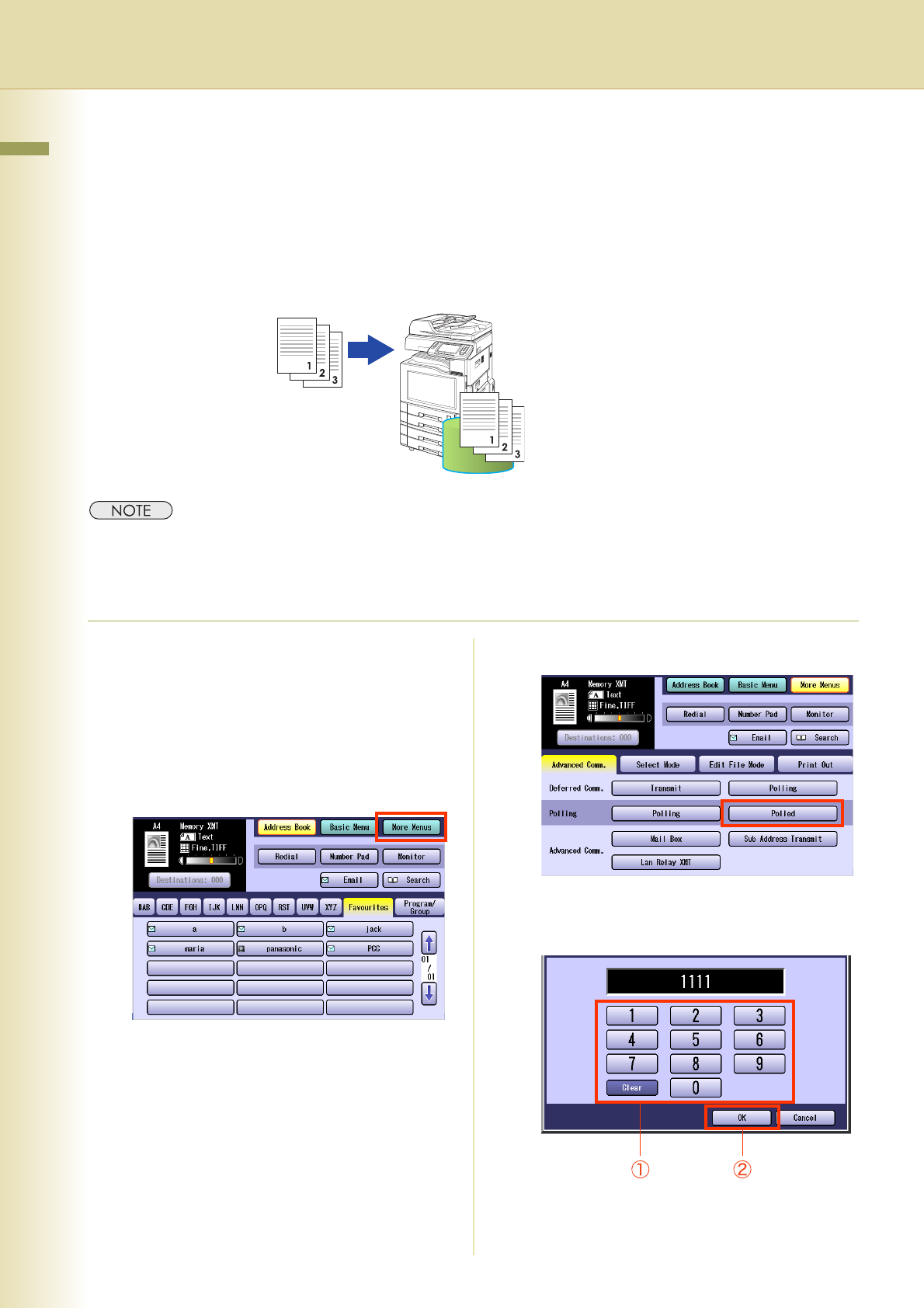 z If a password is not set in the polled station, you may poll the other station even though your machine has a