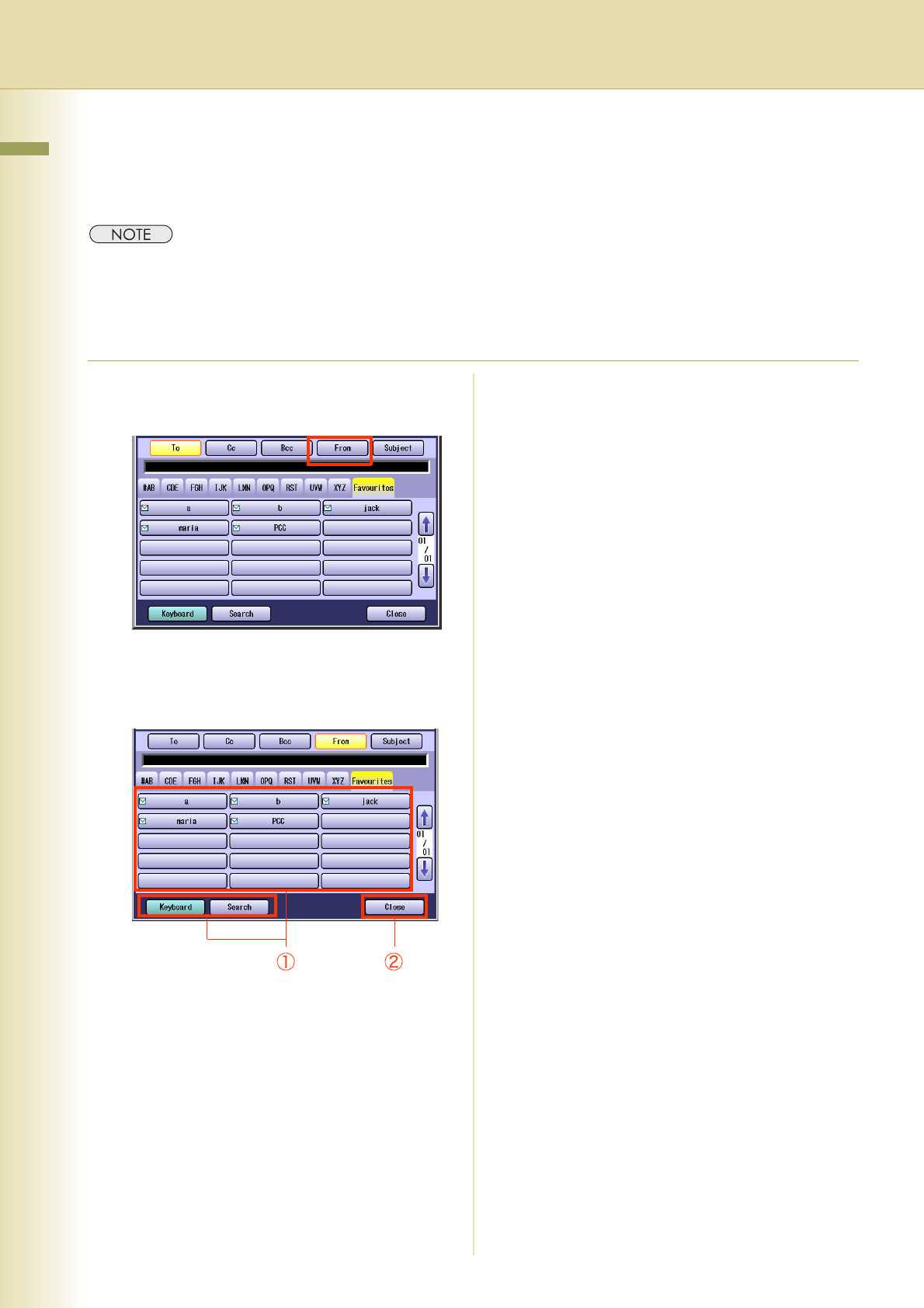 sender list when sending an Email. However, if you select “From” on the Email screen, the sender list will not