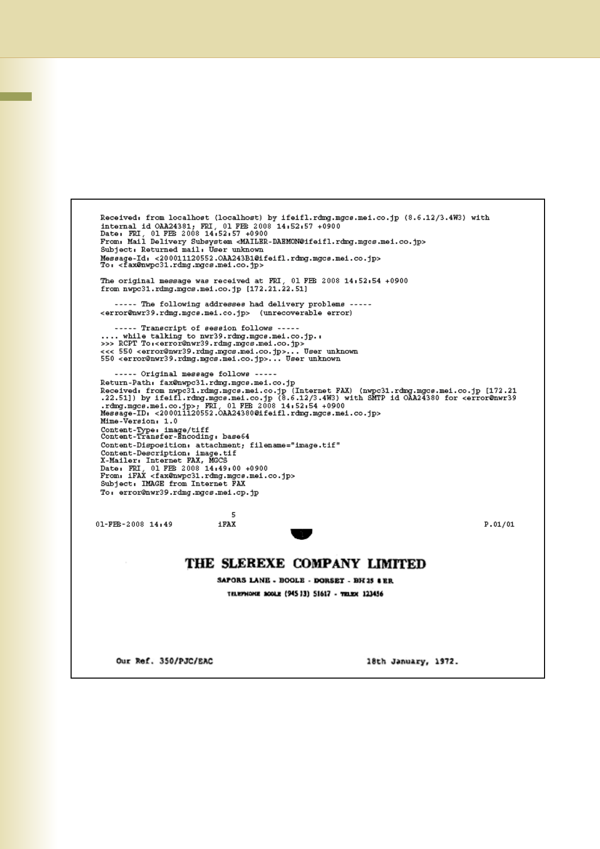 If the Email fails to reach its destination, an error mail is returned from the mail server, and is printed on