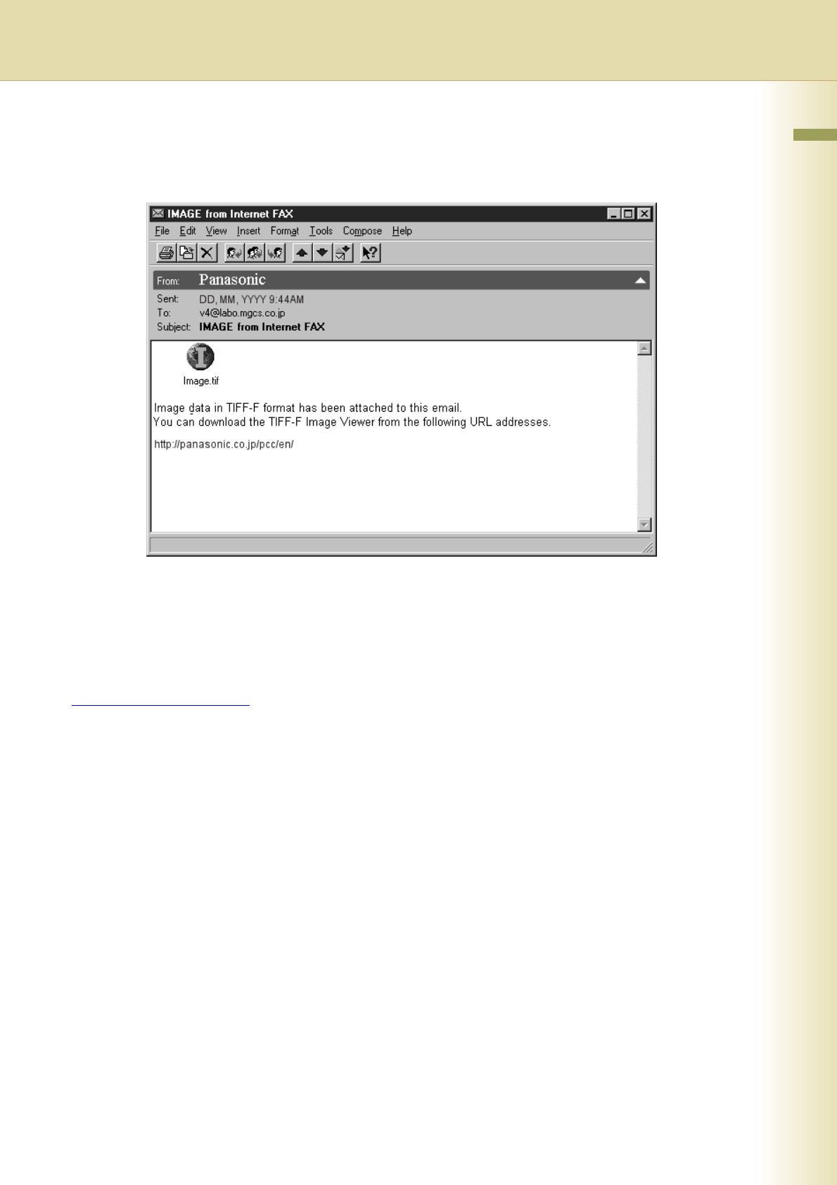 When you open an Email received from Internet Fax, the screen as shown below is displayed.