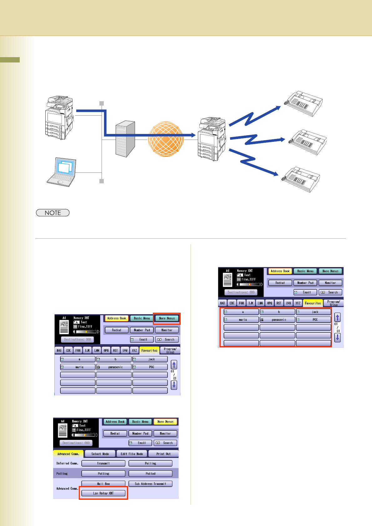 z This function is available when the Function Parameter “140 LAN RLY XMT Request” (Fax/Email Settings >
