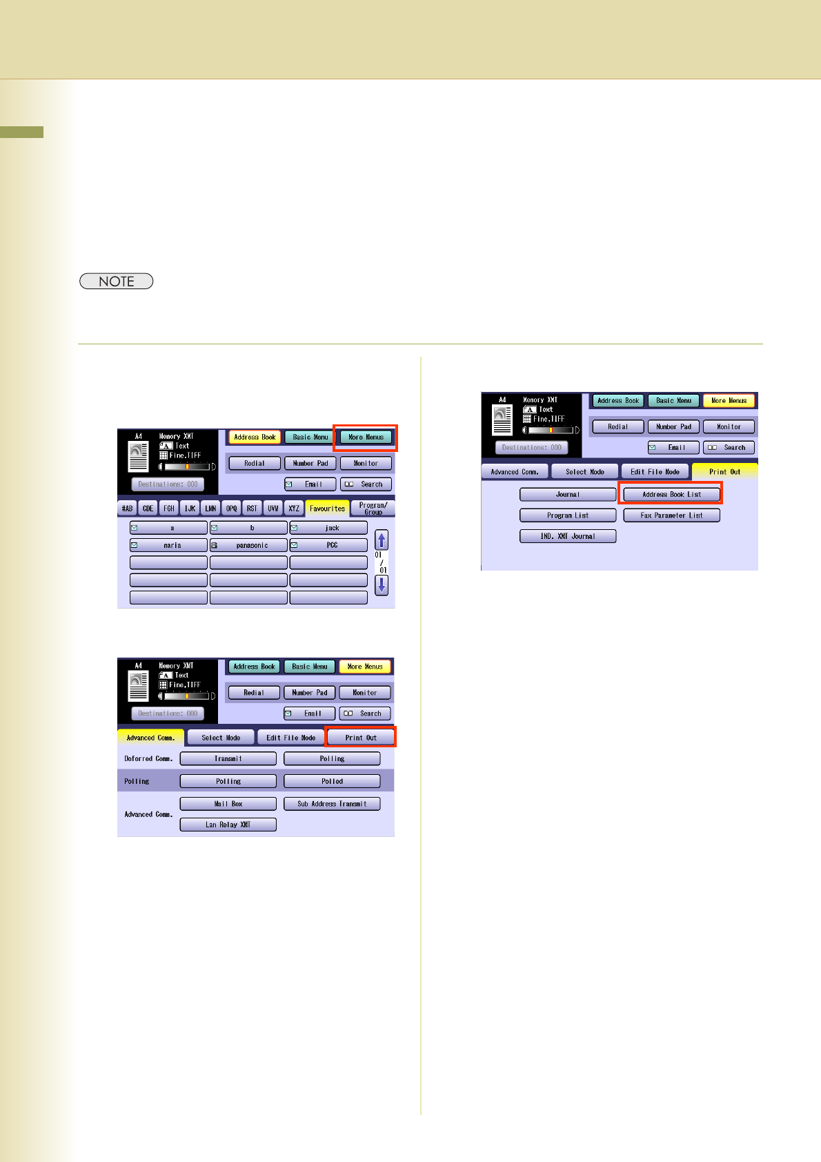 z The Address Book list can also be printed by programming “Fax/Email Settings > Fax Parameters” in