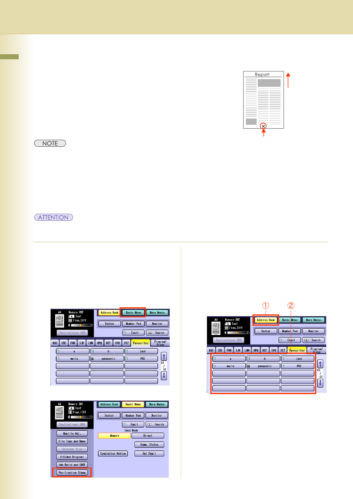 on how to configure the verification stamp, refer to Fax/Email Settings in the Operating Instructions (For